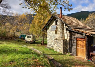 • Encuentro y llegada a la consulta: nos encontramos en la Iglesia de Escuer (valle de Tena) podemos hacer la subida a la Cabaña en 4X4 o idealmente a pie (3km).